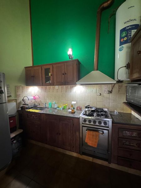 - Cocina con muebles sobre y bajo mesada, barra desayunadora.
